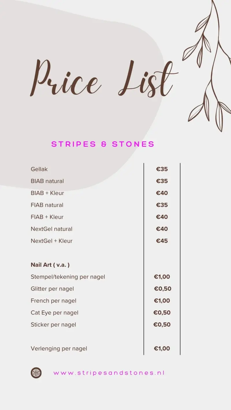 Dit geldt alleen voor het verwijderen van een product van mijn eigen salon. Heb je een product van een andere salon op je nagels en wil je dit laten verwijderen, dan bereken ik €10,- extra!
